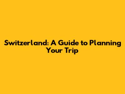 Switzerland: A Guide To Planning Your Trip
