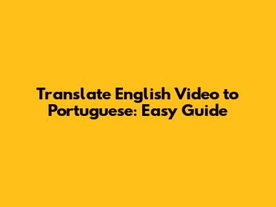 Translate English Video To Portuguese: Easy Guide